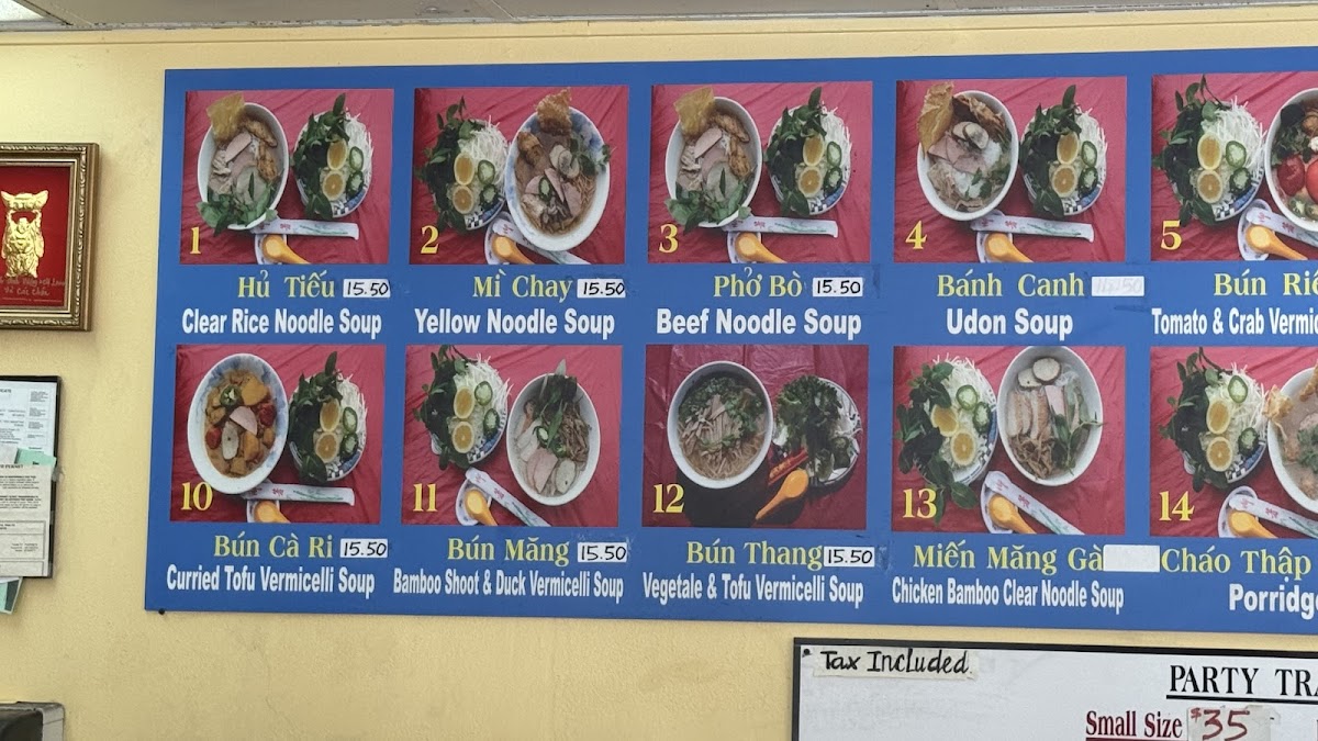 The menu at Đông Phương Tofu focuses on vegetarian and vegan Vietnamese cuisine with a variety of tofu-based dishes. Visitors can expect a range of noodle soups, rice combos, and vegetable-focused meals featuring plant-based proteins. Signature dishes include options such as Mushroom Tofu, Bún Huế, Bún Măng, Laksa, and Veggie Bun Bo.